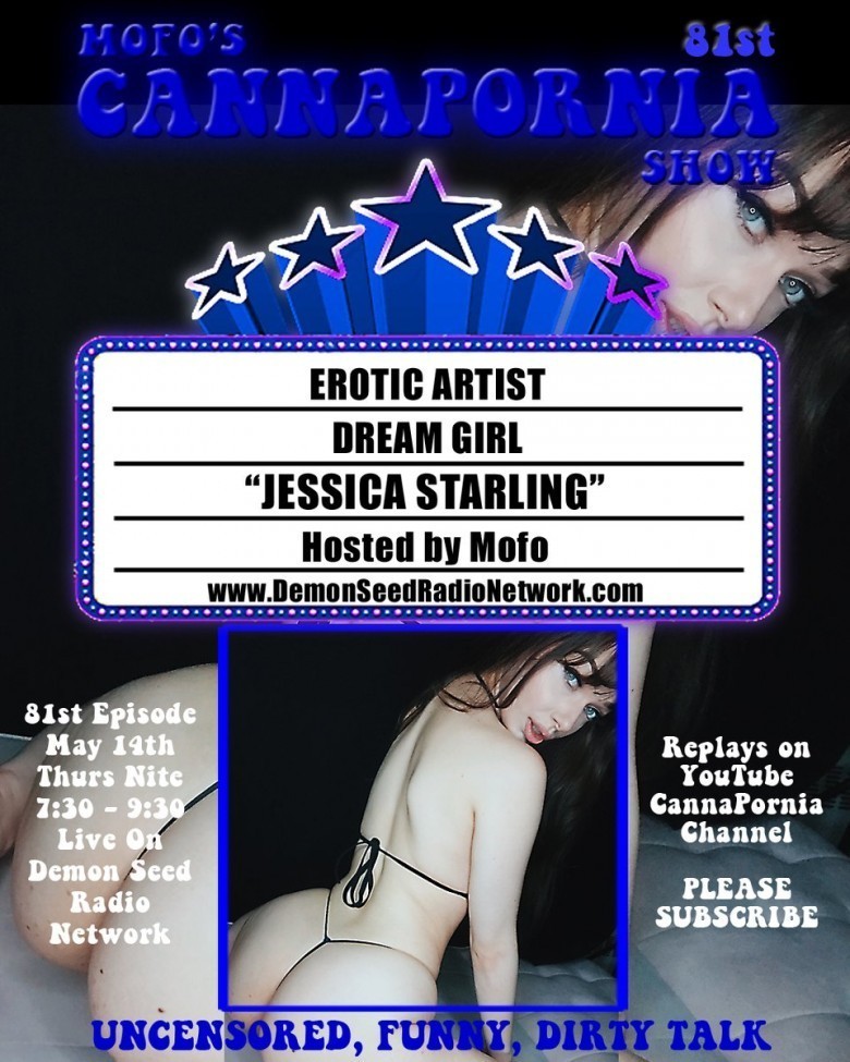 Thursday night just got exciting! It’s the 81st show, and Jessica is Mofo’s special guest. CannaPornia is a live, uncensored, and funny weekly radio show that combines elements of cannabis and porn. This is Jessica’s first appearance on the highly original show. CannaPornia Show airs from 7:30pm to 9:30 p.m. PST/10:30pm to 12:30am EST. Jessica will join in the fun around 8pm PST/11pm EST.