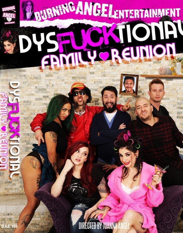 Porn megastar/director, BurningAngel founder and 2016 AVN Hall of Fame inductee Joanna Angel announces the release of her latest directorial effort, Dysfucktional Family Reunion, available for pre-order now through Exile Distribution, set for an April 13th ship date and April 20th street release.