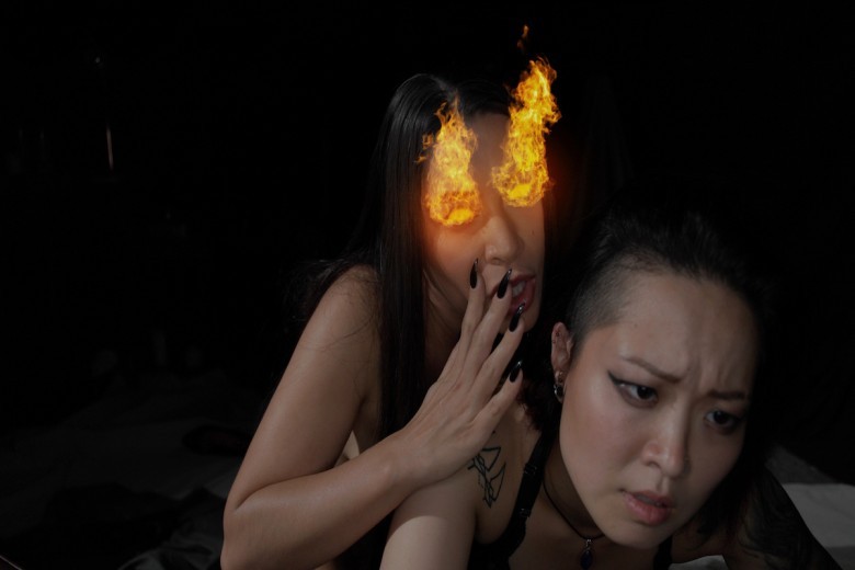 “Take My Soul” opens in the back hallway of a nightclub. Young woman Sindal Xie is about ready to fuck a guy, but then Meana the devil with fire eyes appears. Her sinister laugh and chilling voice makes Sindal question her existence. From there on, the story is through cinematic artistic tableaus that visually tell the tale of Sindal’s seduction by the devil. The two become ravenous she-devils and Sindal gets all she ever wanted, which is “feeding on the one who had power over her.” They’ve set their sights on a man, who they can devour, body and soul, in an unforgettable three-way. “Take My Soul” features incredible special effects and the music of the same name composed by KnuckleDuster Music Inc. Watch the trailer and 75-minute exclusive scene at