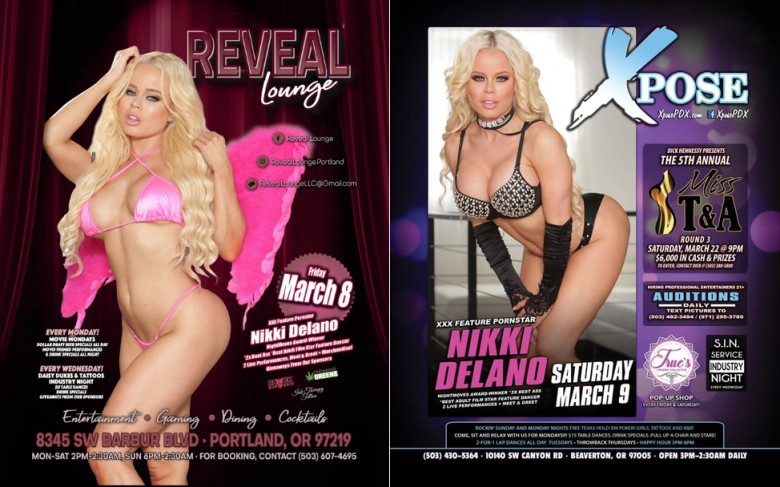 Nikki Delano Featuring at Reveal Lounge & Xpose Gentlemen’s Clubs in Oregon
