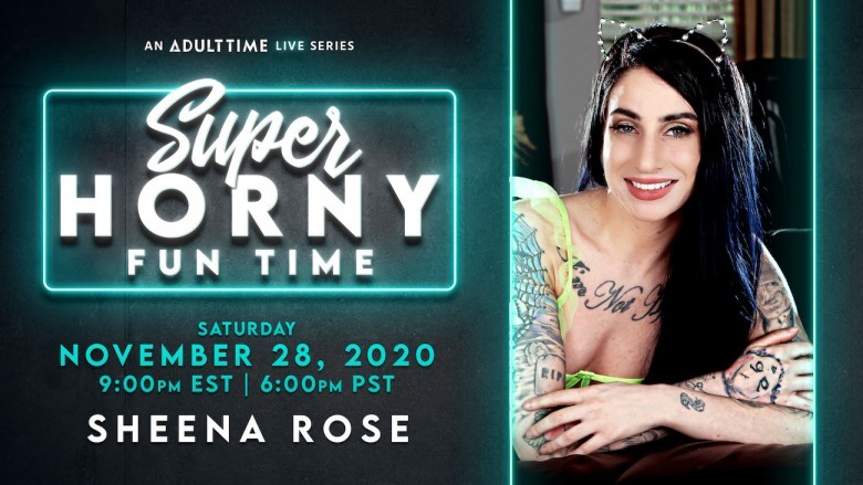 (Las Vegas, NV) ALT tatted petite stunner cam model and clip artist Sheena Rose is set to stream live on Adult Time’s Super Horny Fun Time this Saturday, November 28th.