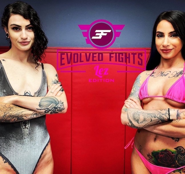 Sheena takes on goth tatted beauty Lydia Black in the latest Evolved Fights Lez Edition video—Sheena previously won her fight with Avery Black, was dubbed “Little Sheena Mean Rose,” and is looking for another win. It’s a pretty even fight with Sheena and Lydia, so they have a tiebreaker match where they get each other off. With stellar wrestling skills and hot girl-on-girl action, anyone could win the match. The winner gets to fuck the loser any way she likes with the ultimate surrender. Check out the trailer, exclusive video, and almost 100 photos for “Lydia Black vs. Sheena Rose” at evolvedfightslez.com/updates/Lydia-Black-vs-Sheena-Rose.html.